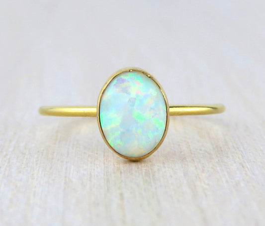 14k Gold Filled 6x8mm Fire White Opal Ring