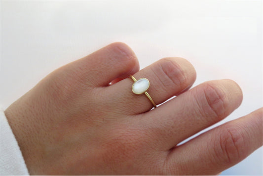 14k Gold 6x8mm Oval Mother of Pearl Ring