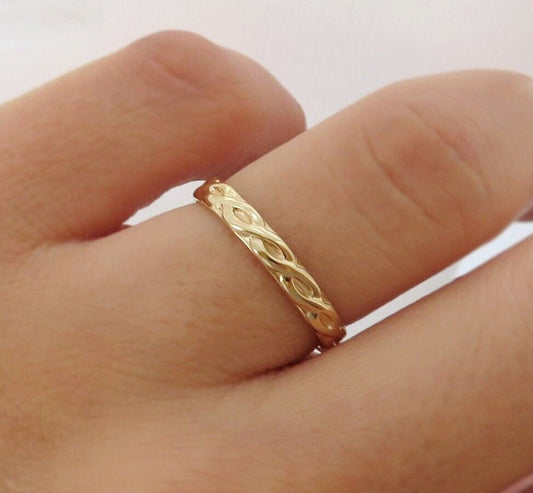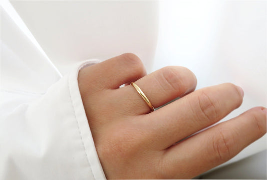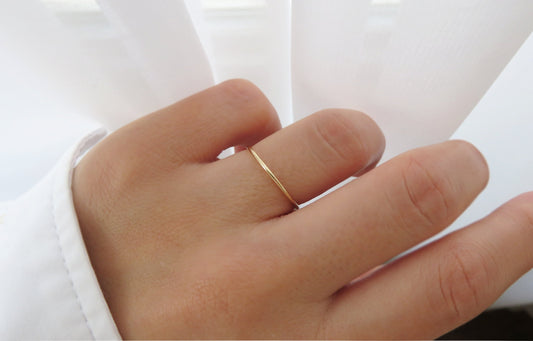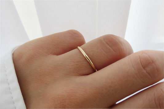14k Gold 1mm Hammered Thin Stack Gold Ring