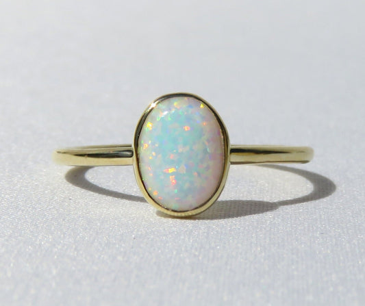14k Gold 6x8mm Oval White Fire Opal Ring
